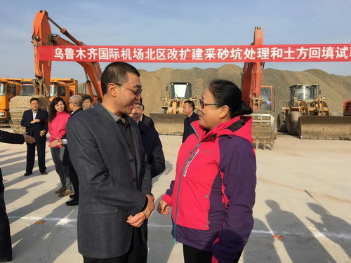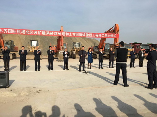 2016年10月16日上午11時,我司承建的新疆烏魯木齊國際機(jī)場北區(qū)改擴(kuò)建工程采砂坑處理和土方回填試驗段工程Ⅰ標(biāo)段項目順舉行了開工儀式。